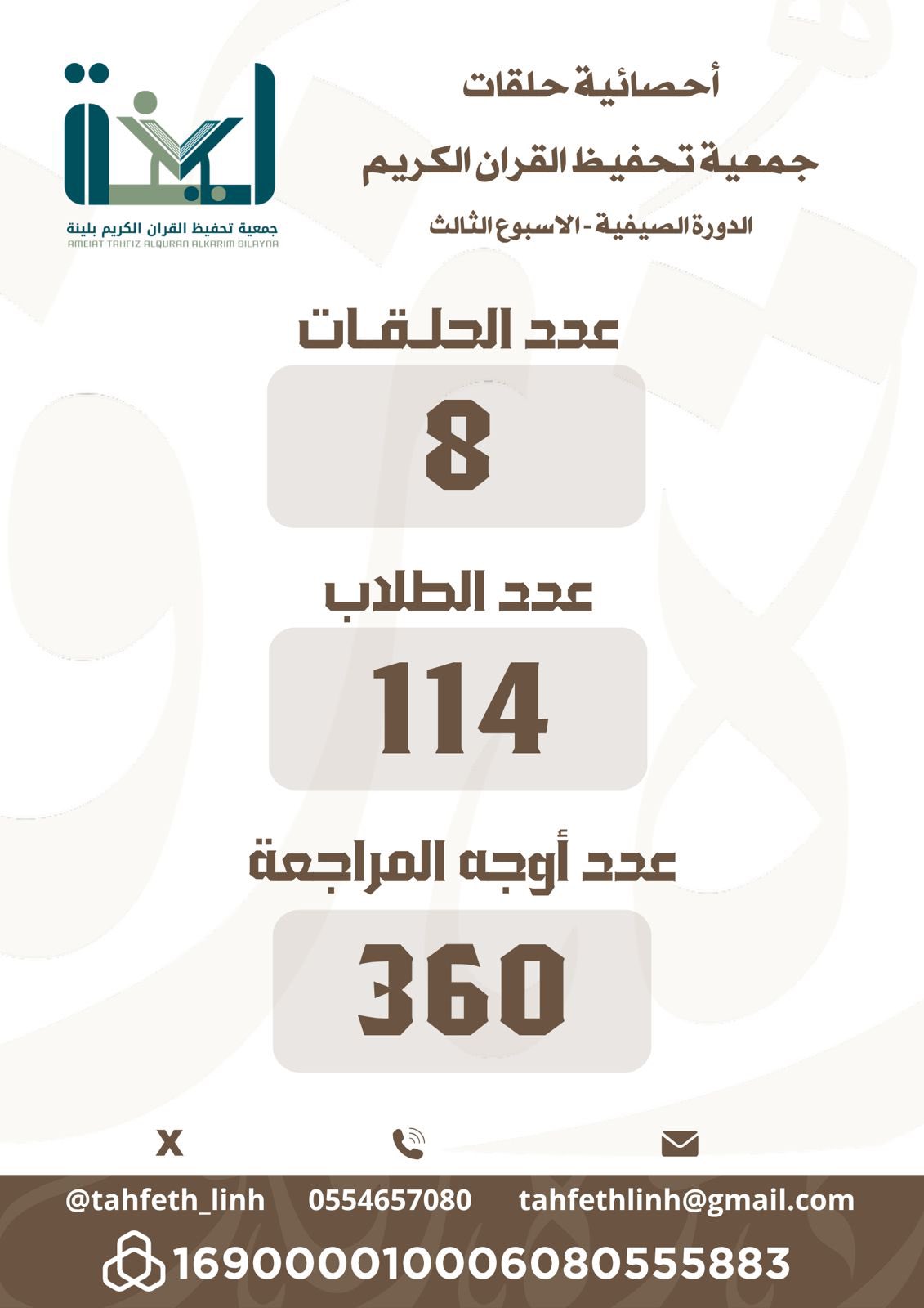 احصائية حلقات جمعية تحفيظ القرآن الكريم الدورة الصيفية ( الأسبوع الثالث ) أحصائية حلقات جمعية تحفيظ القرآن الكريم الدورة الصيفية ( الأسبوع الثالث ) quran linh