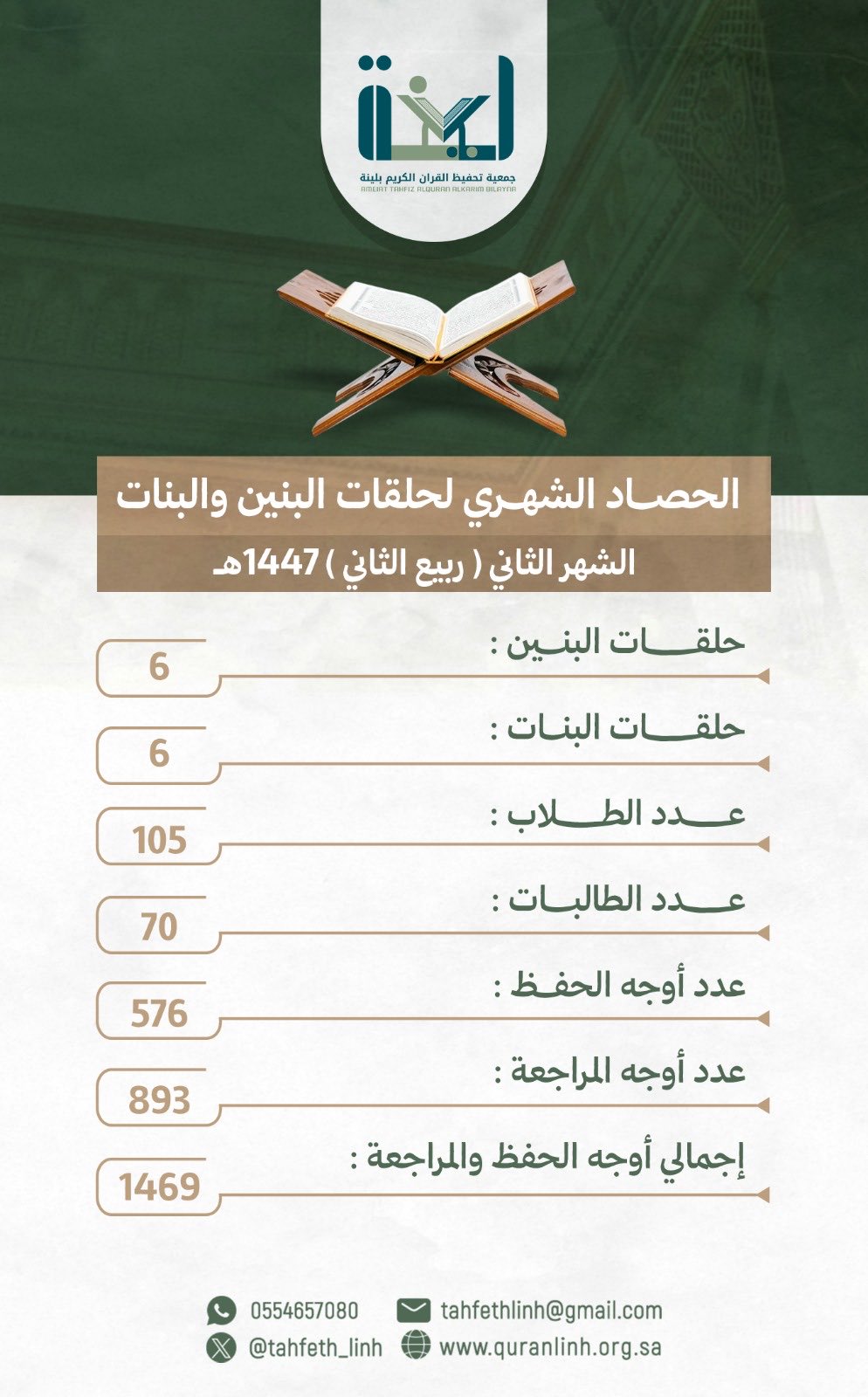 | نُعلن الحصاد الشهري المفصل لحلقات #جمعية_تحفيظ_القران_الكريم_بلينة