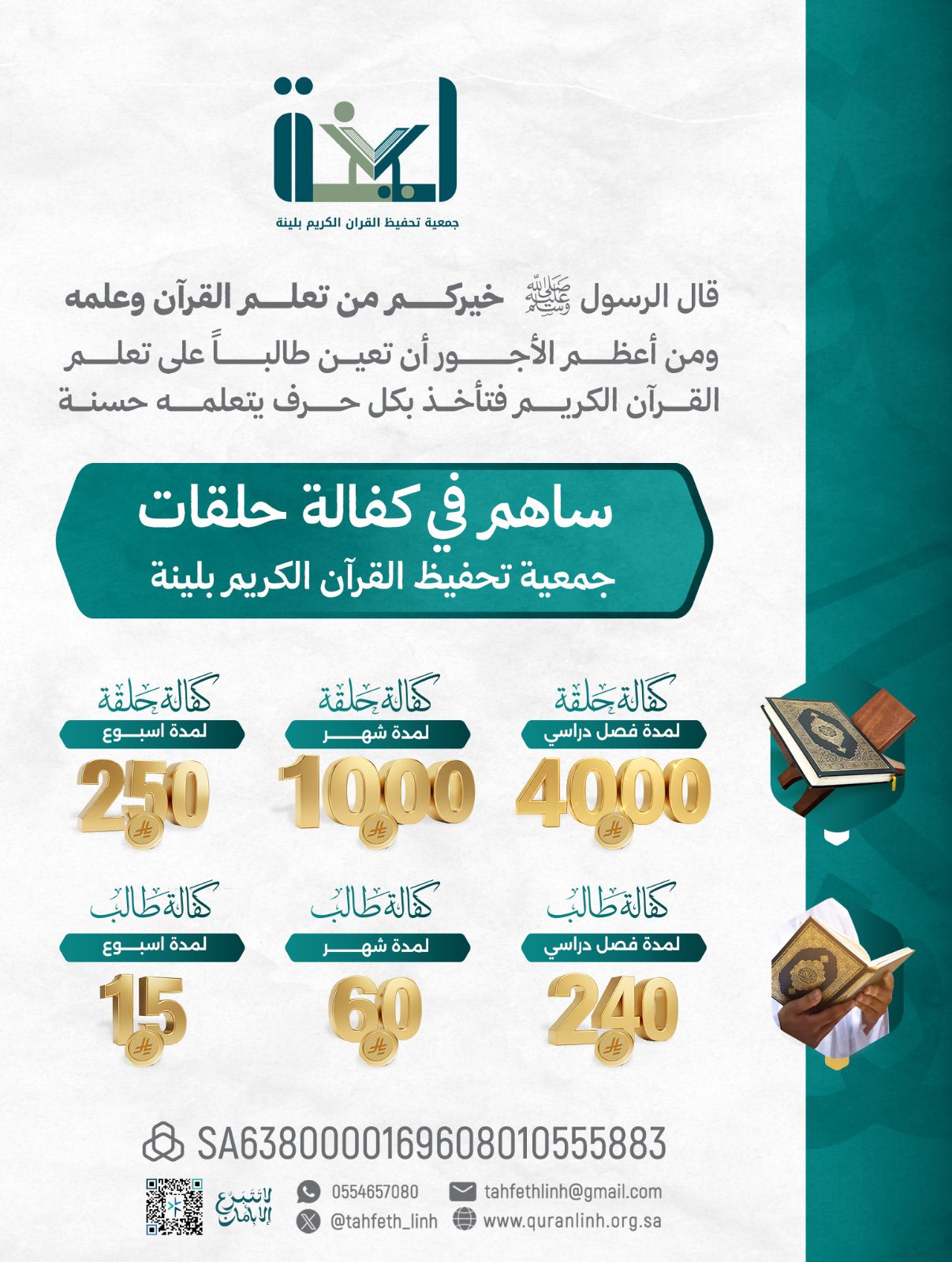 ساهم في كفالة حلقات جمعية تحفيظ القرآن الكريم بلينة |تجارة لن تبور.. كن شريكاً في تعليم كتاب الله 📖✨ قال رسول الله ﷺ: «خيركم من تعلم القرآن وعلمه». #جمعية_تحفيظ_القران_الكريم_بلينة #رمضان_كريم quran linh