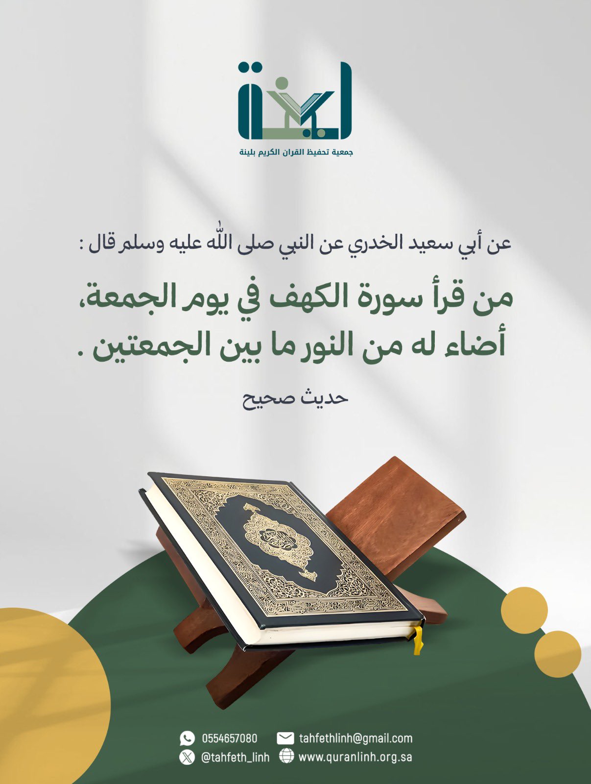 من فضائل سورة الكهف | من فضائل سورة الكهف ﴿إنّ اللهَ وملائكتَهُ يُصَـلُّونَ على النبي يا أيها الذين آمنوا صَلُّوا عليه وسلِّمُوا تسليما﴾. اللهم صل وسلم على نبينا محمد ﷺ ❤️ #جمعية_تحفيظ_القران_الكريم_بلينة #يوم_الجمعة quran linh